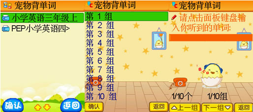 英语学习兴趣尤为重要,在“宠物背单词”里,分组分级练习让孩子逐步提高成绩。可爱的宠物薇小朵对孩子具有十足的诱惑力,她不仅陪孩子一起背单词,孩子的单词记得好,薇小朵就还会开心地做各种表演,以资奖励,而且会慢慢长大,这个过程激发了孩子的爱心,让孩子充满成就感,无形中对学习起到了激励的作用。
