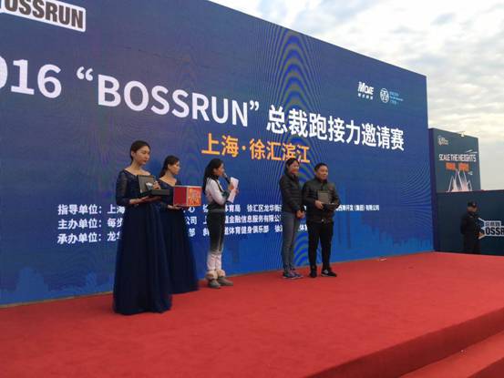 2016123日,第二Boss Run总裁跑接力邀请赛(徐汇滨江站),中国民生银行私人银行、汇源集团、碧生源控股、上海金山惠民村镇银行、红星地产集团、东软集团、房金所、市医械所、海棠金融、魔方金服、文思海辉、鸿轩农业、创邑机构、优帕克、名创集团、齐家网、合星财富、成基金、轻轻家教、出奇科技、与睿企业管理、股金宝、犀牛会、东方装饰等逾三十支知名企业跑团组团参赛。
