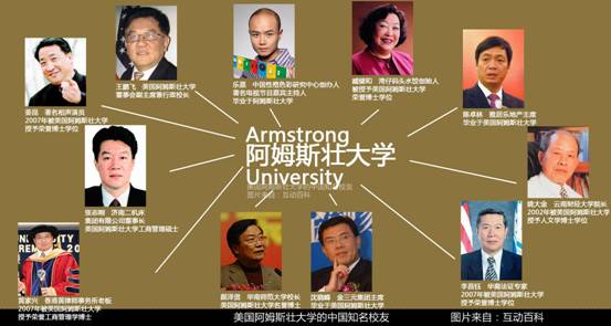 据该词条的协作网友sinoalex指出,每年由世界华商投资基金会及美国美亚发展协会主办的“世界杰出华人奖”的第一届到第八届的所有得奖者,都会同时获得美国阿姆斯壮大学的荣誉博士学位。而阿姆斯壮大学并不在美国专上教育办公室认可的名单之列,在联合国的国际大学联盟的数据库中也无资料,在美国教育科学院的官网上也未能搜到阿姆斯壮大学的相关信息。同时,在中国教育部公布的美国学校名单中,也无阿姆斯壮大学。因此可以判定,阿姆斯壮大学跟唐骏所读的西太平洋大学性质基本相同,属于“野鸡大学”,而这样的大学颁发的博士学位,恐怕也只能被称为 “野鸡博士”了。