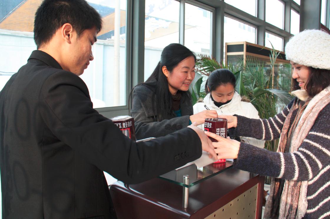 而为了迎接此次岁末疯狂购车活动,上海明友泓福店亦全力支持,当场的筹备也是喜庆又丰厚,为到店的幸运顾客准备了寓意1314跨年甜蜜的好时巧克力罐装)与油卡来答谢广大顾客。一屋子购车客户和销售人员的脸上满是甜蜜蜜的笑。