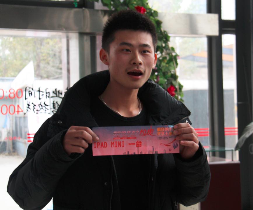 当然,中了Ipad Mini的小伙子也是一脸高兴,直招呼着家里人赶快来分享这份喜悦!